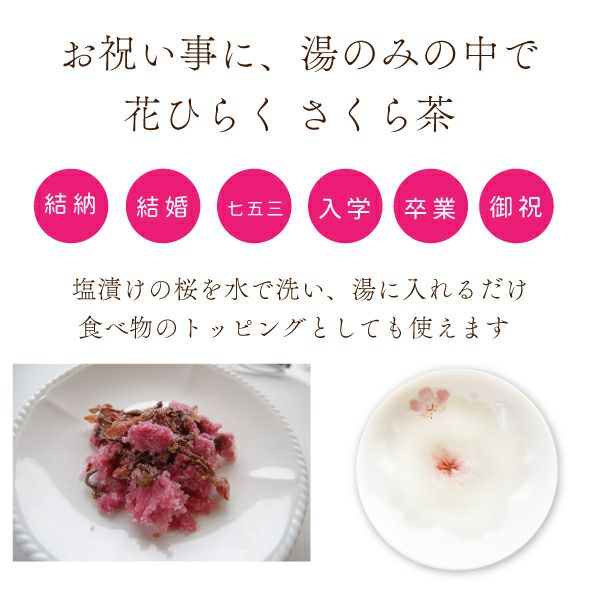 他の画像を見る おもてなし 国産 花びら茶 塩漬け の桜 を水で洗い熱湯に浮かべるだけ 桜 塩漬け 国産 さくら茶 カップ 桜茶 40g 七五三 慶事 お祝 合格祝 結納 結婚式 お茶 人気 お花のお茶 販売価格 ¥ 432 税込 販売を終了しました。 詳細を見る