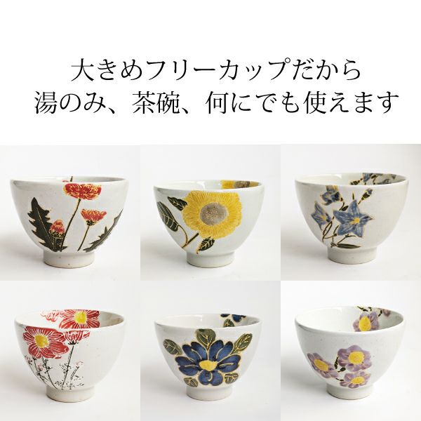 他の画像を見る 大き目の湯のみとして 小鉢としても使えるフリーカップ 花柄湯のみ 四季碗 有田焼 湯のみ 【宅配便限定】 伊万里陶芸有田焼いっぷく碗(フリーカップ)・四季彩 大き目湯のみ 大き目湯のみ 新生活 ギフト スターター 販売価格 ¥ 2,200 税込 カートに入れる