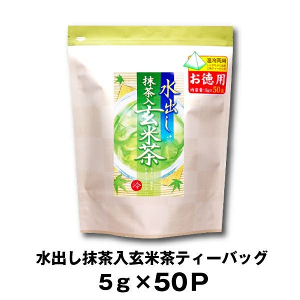 他の画像を見る 水出し抹茶入り玄米茶TB 5g×50 抹茶入り玄米茶 玄米茶 抹茶入り 国産 水出し 香ばしい 大容量 ギフト プレゼント ティーバッグ 緑茶 家庭用 常備茶 販売価格 ¥ 1,200 税込 カートに入れる