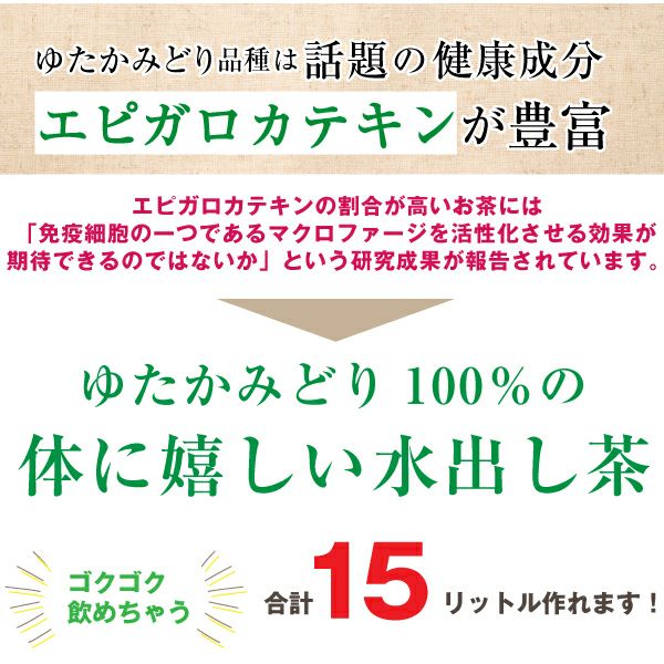 他の画像を見る 高機能品種茶が15L分作れる!ゆたかみどりだからおいしい 水出し茶が簡単手軽に作れます 水筒マイボトルにも お茶 ティーバッグ 水出しゆたかみどりティーバッグ 2袋セット ソイロン 販売価格 ¥ 1,340 税込 カートに入れる