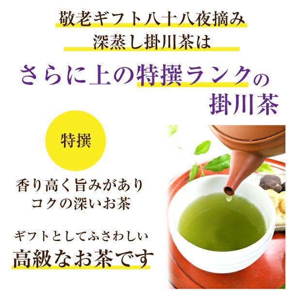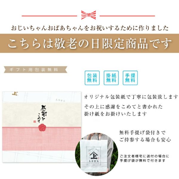 他の画像を見る 敬老ギフト一番人気!メッセージ付き掛け紙 縁起物 正真正銘八十八夜に摘み取り熟成させた日本茶 煎茶 緑茶 2025年 八十八夜摘みのお茶80g×2本セット 敬老 敬老の日 ギフト プレゼント 孫 施設 おすすめ 常温 深蒸し掛川茶 緑茶 日本茶 送料無料 おしゃれ 食べ物 健康 販売価格 ¥ 2,680 税込 販売を終了しました。 詳細を見る