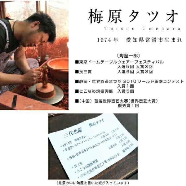 他の画像を見る 若手 急須職人 使いやすい ろくろ製法 ティーポット 陶器 実用性も兼ね備えた技法 使いやすい 日常で使う上質な急須 常滑焼 【北龍】 梅原タツオ おしゃれ 急須 プレゼント ギフト 使いやすい 国産 黒系 きゅうす 日本製 職人の手作り ろくろ製法 高品質な急須 炭化 ギフト とこなめ急須 せっ器 送料無料 販売価格 ¥ 6,160 税込 詳細を見る